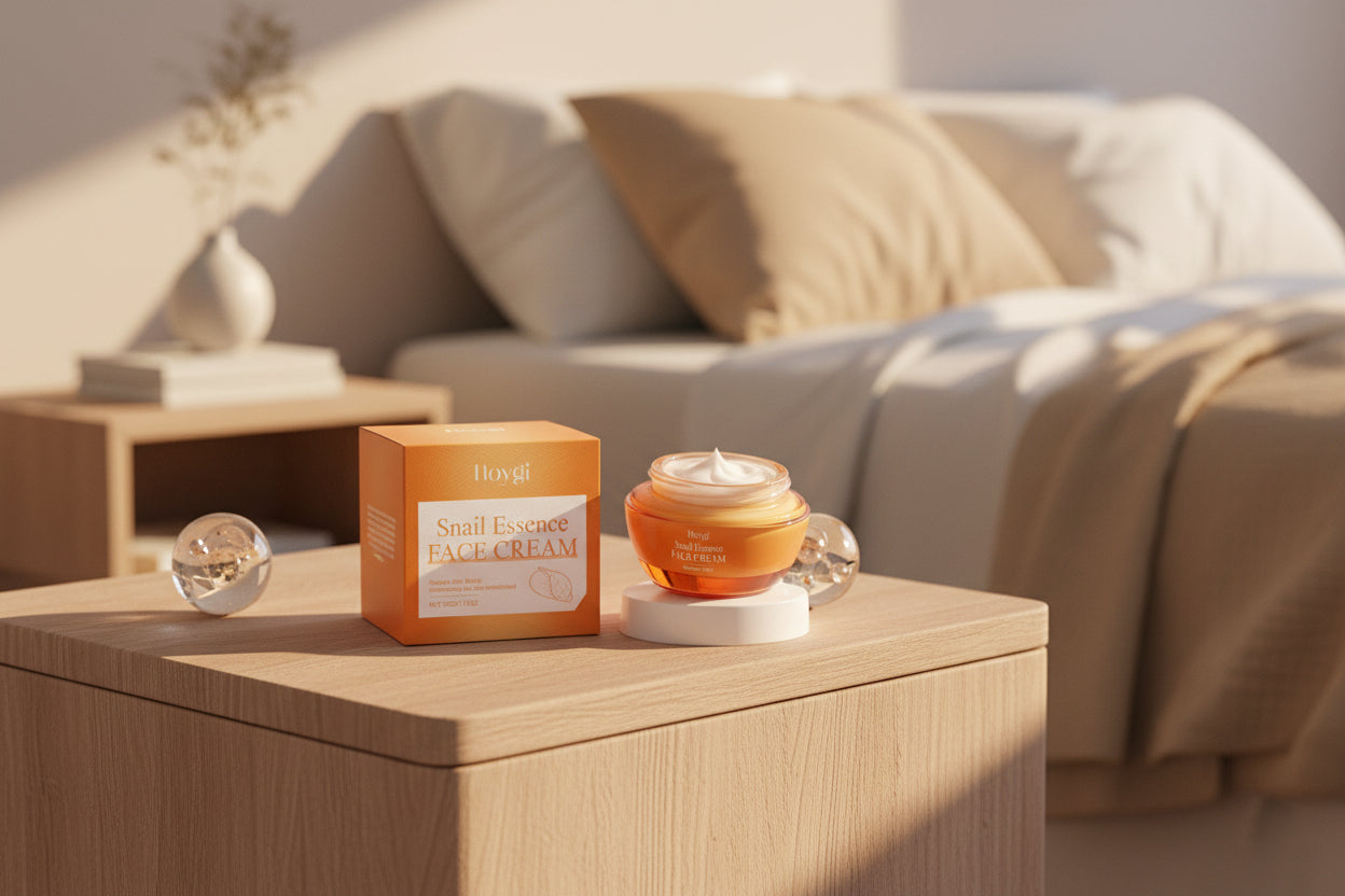 Snail Essence Face Cream with packaging on a white background